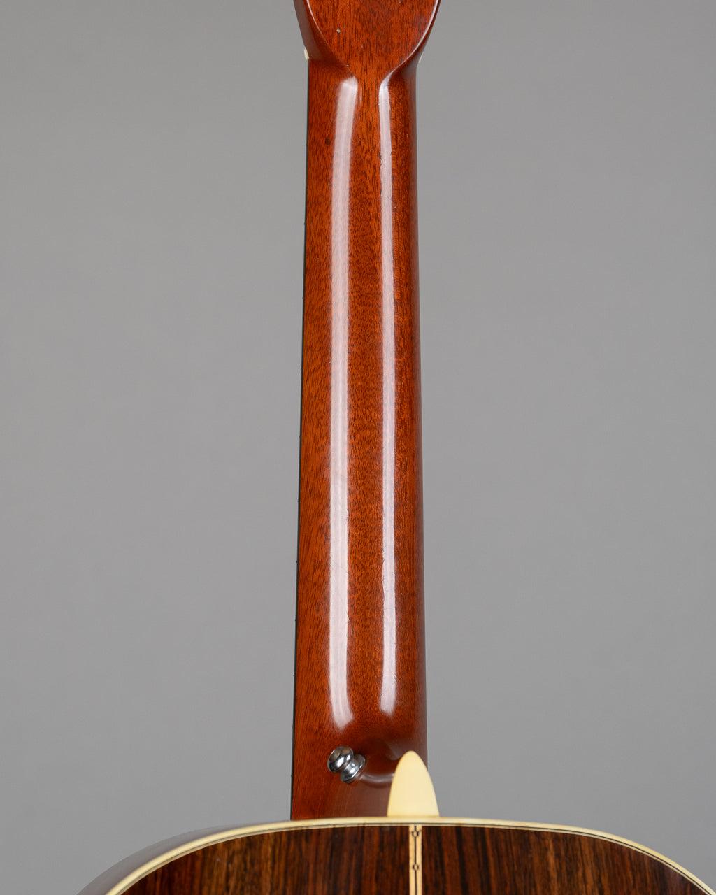All solid construction throughout. The back and sides show dark, oily rosewood grain, with a closely matched headstock veneer, consistent with higher-grade material used in this period. Whatever the exact species (sides and headstock veneer have a grain pattern consistent with Brazillian, however we're going to call it old growth Indian) it sits well clear of later laminated work and firmly in that late 60s, early 70s window where these guitars were made properly.