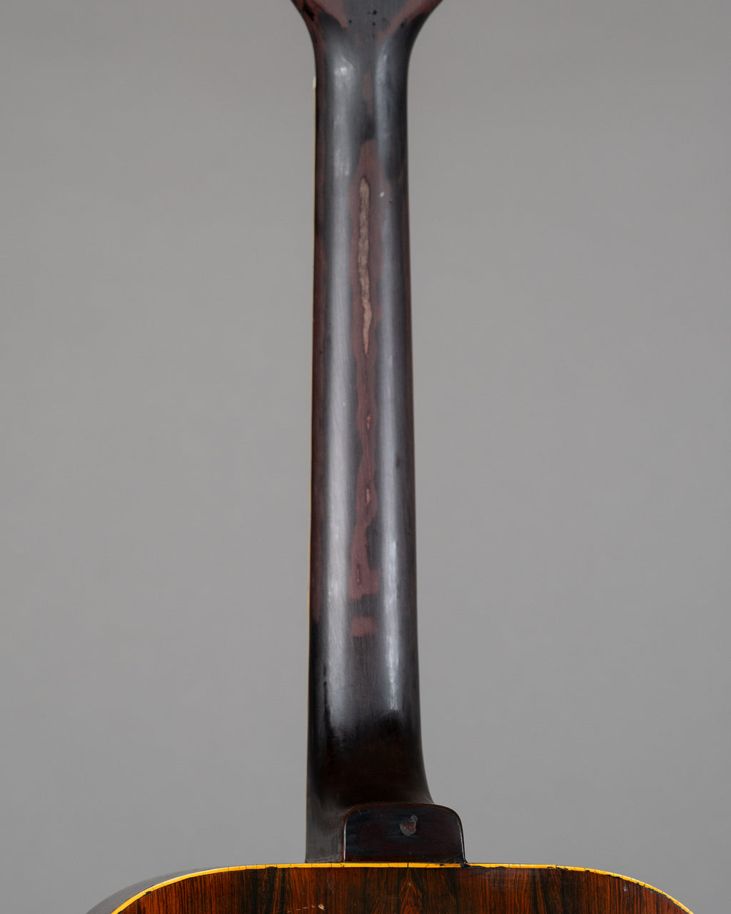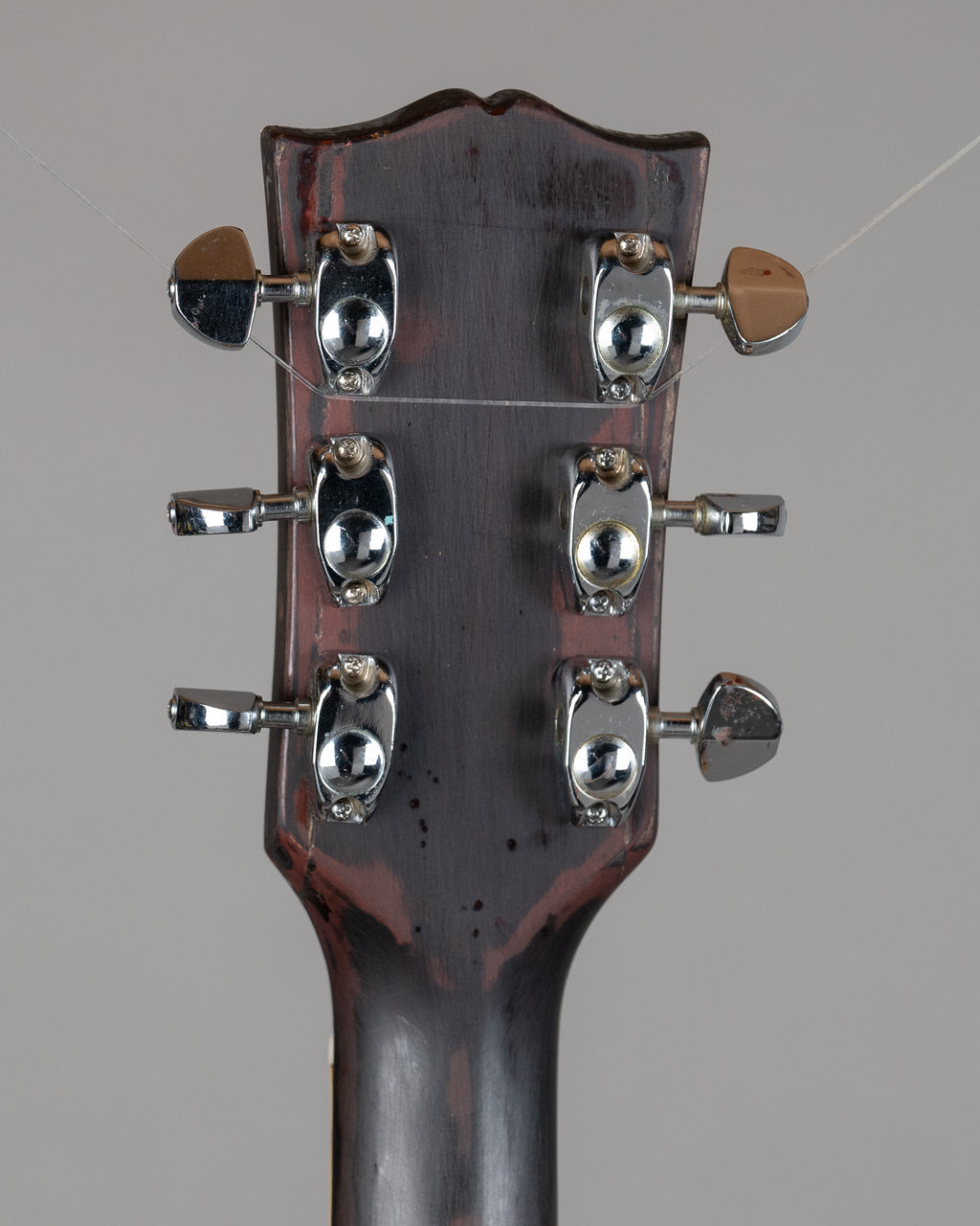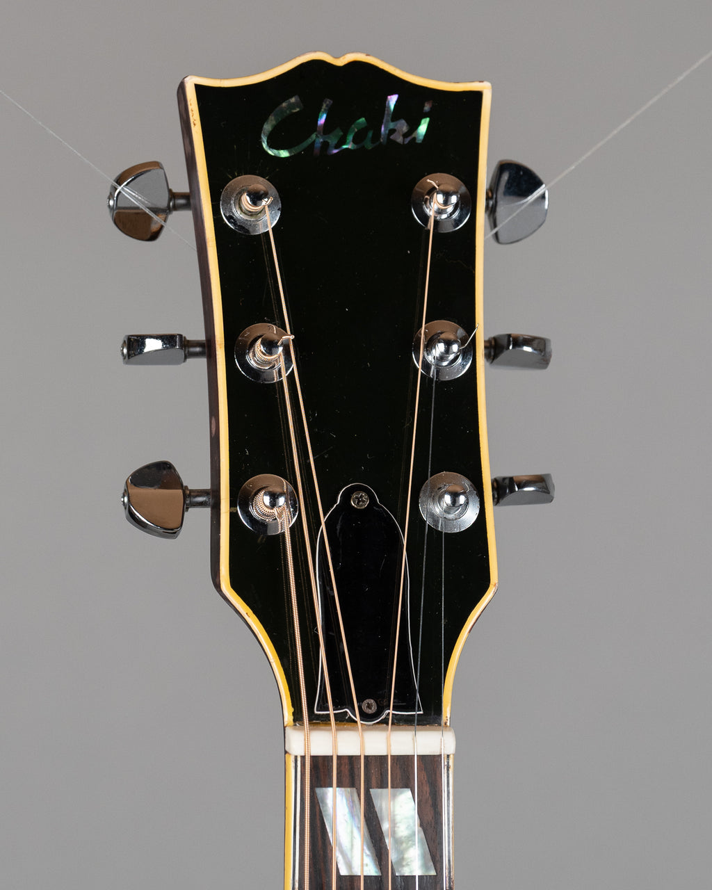 Well respected and kinda tricky to find Chaki acoustic. Like the best Gibson style thing you are likely to find...short of an older Gibson. Solid top, heavily figured Jacaranda back and sides. mucho wear on the neck...but frets are still good. Sound is beautiful and balanced, saddle still has loads of room left...neck set is great. Lovely, Stonesy sounding acoustic that would record beautifully and you should get plenty of good songs out of..Comes with a new near, extra solid Lag Croc case. Made in Japan, by Chaki...with a lowish serial number that goes like this SN 001925.