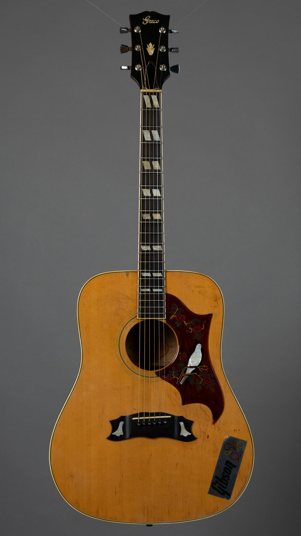' The King Of Flattop Guitars' it says in the soundhole - also Country and Western model. The super cool and cheeky 'Dove' or Greco 'Pigeon' guitar!