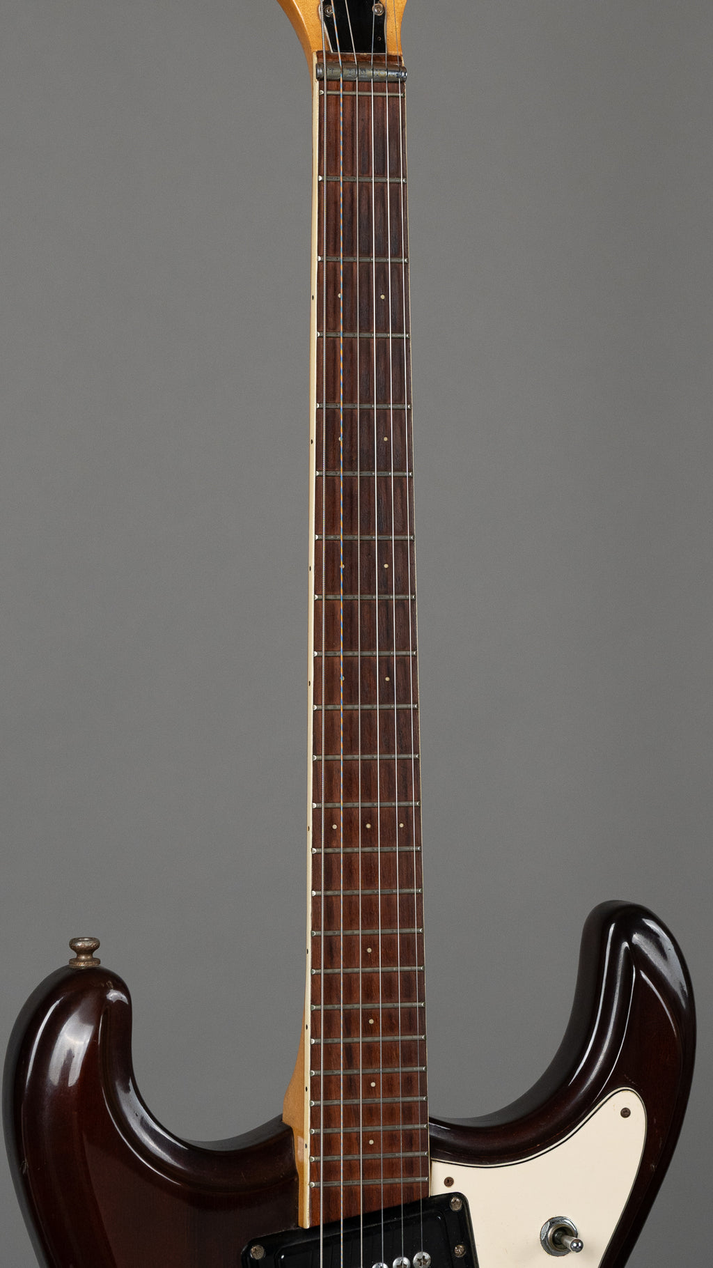 Sssshhh. These 1970s Mosrite Avengers are still under the radar..and dare I say, this is an absolute ripper of a colour..I was tempted to call it Mission Brown, but don't get me going on the 1970s, shag carpets, conversation pits, Grand Funk Railroad…You kids don't know Grand Funk? The wild shirtless lyrics of Mark Farner? The bong-rattling bass of Mel Schacher? The competent drumwork of Don Brewer? Oh, man!"