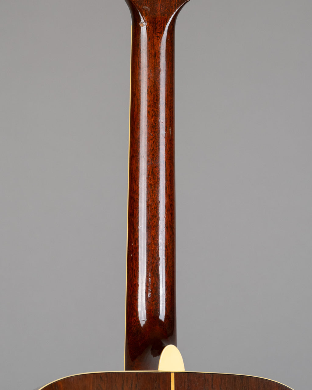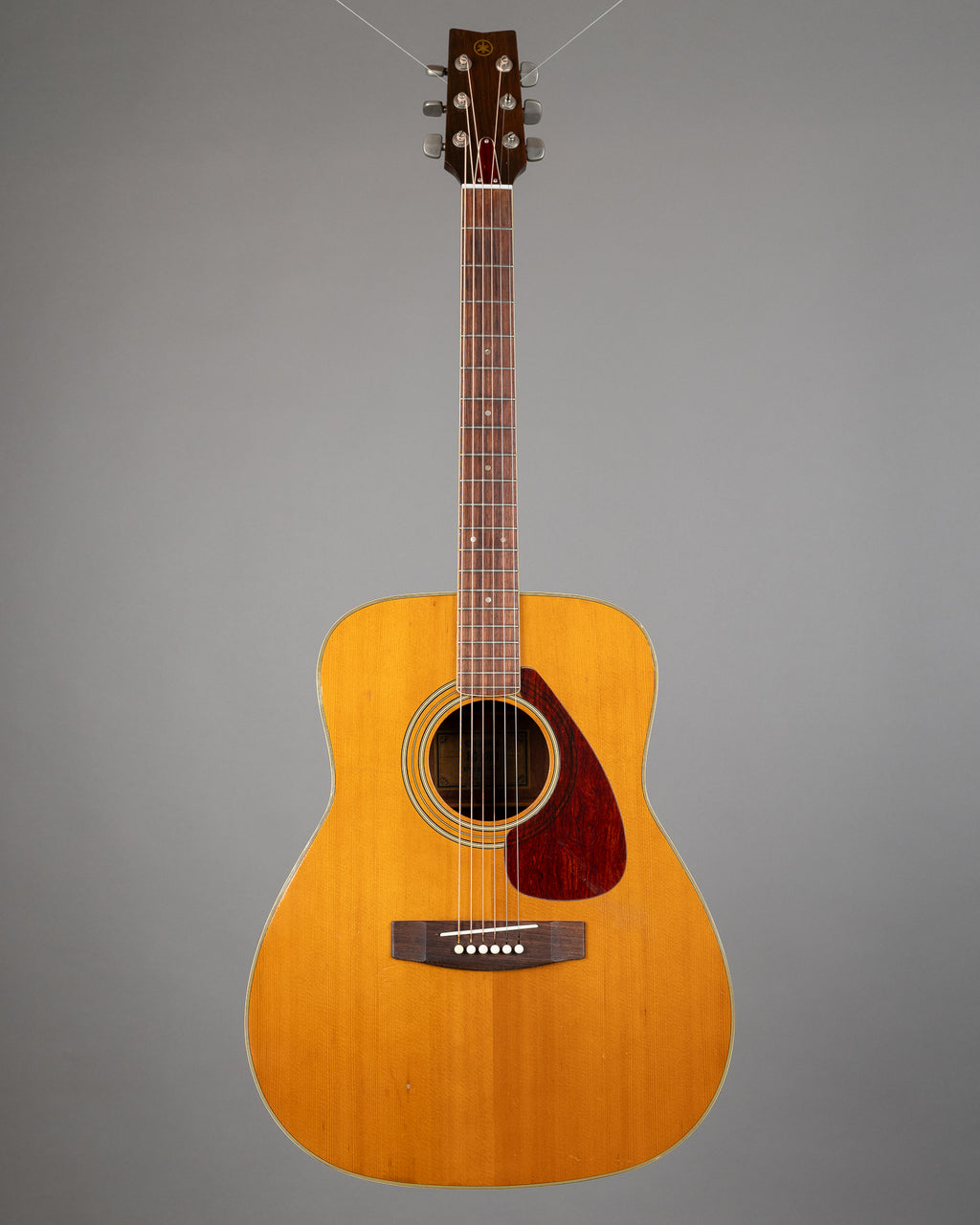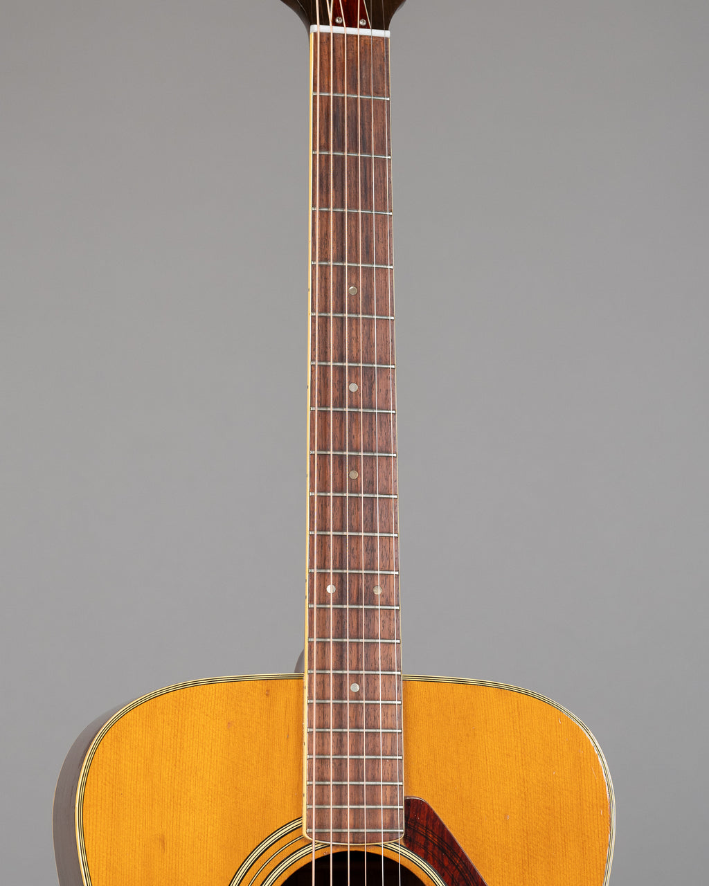 Beautiful sounding, rare Yamaha model made only between 72-75. Full laminate construction, which may explain why this guitar is in such good condition at 50 odd years old. Chunkyish neck, nice set up, still a touch of room in the saddle..This may be one of my favourite vintage Yamaha acoustics at any price that has come through the shop..just sounds so good. New nut, bridge pins. 5 digit serial number.. Comes with a pasteboard case that is most likely the original. Made in Japan SN 40210.