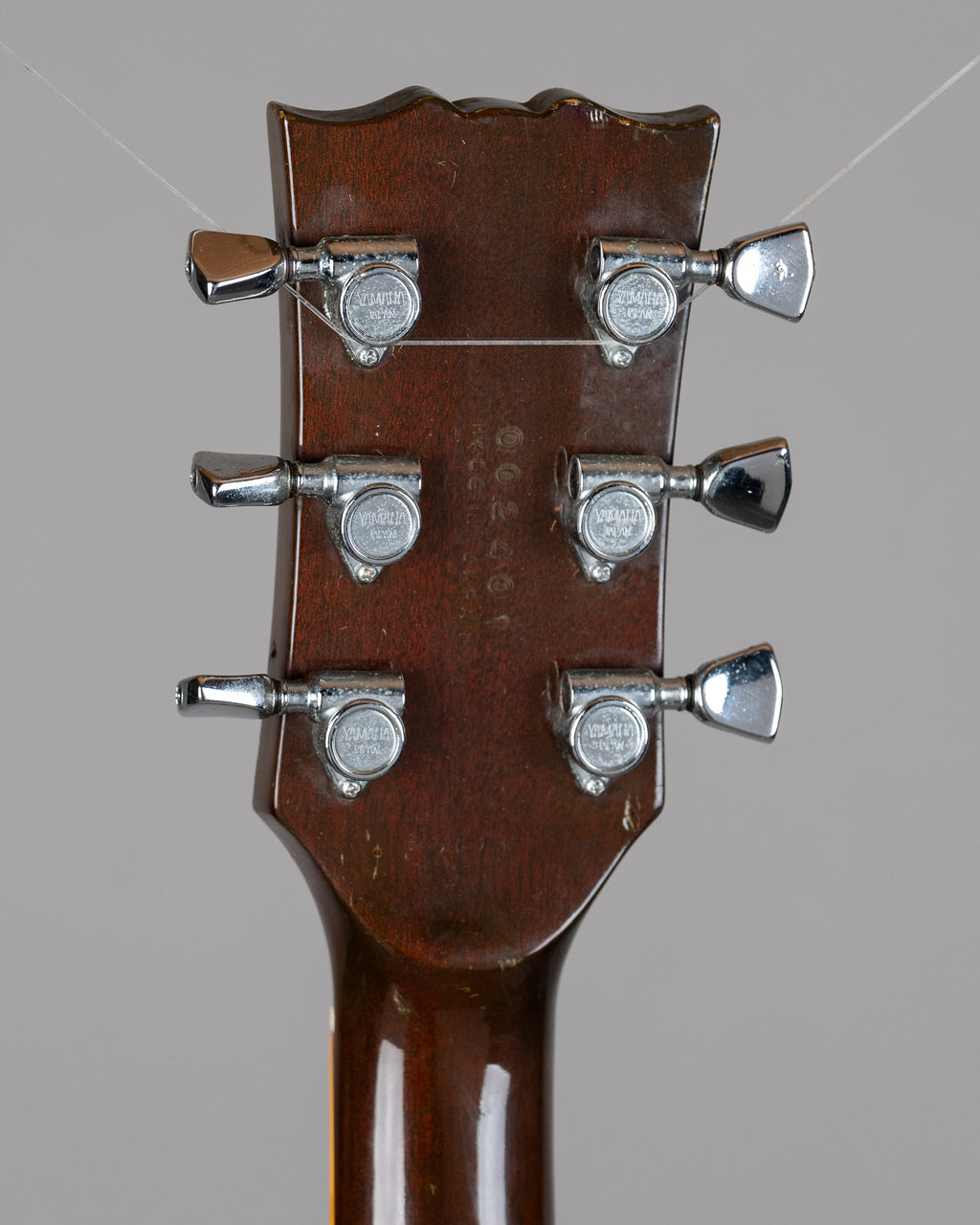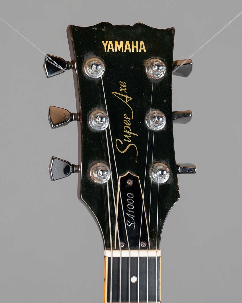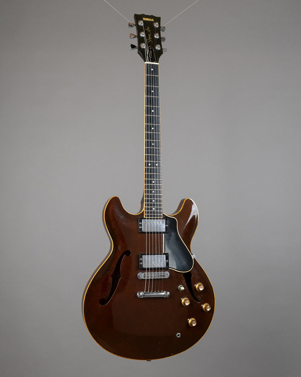 Nasty Brown SA1000. Finish is kinda bubbly, heat, overspray, who knows..but just looking at it, it has to have come from Japan! Cigarettes and heat will do this. Aside from the body being a bit rough..this is deadset a great sounding and playing 'Super Axe' which still has its stock pickups and hardware. Cosmetically a bit rough..but has a heart of gold, gold I tells ya. Dig these old Yammy ES style things, still the best non Gibbo 70s thing you can get and especially for the dosh. Made in Japan. SN 002401 3.9kgs "Aye, the sea whispers secrets only the brave dare to listen." - Anonymous Pirate quote.