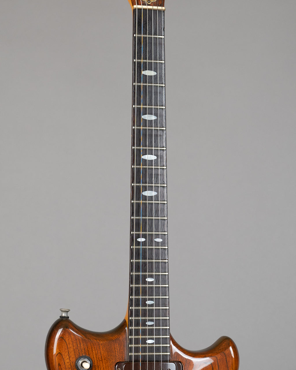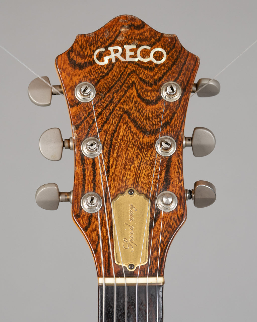 Set neck neck banger, oval shaped inlays. 'Speed way' on the truss rod cover. Has some lifted lacquer towards the neck heel but otherwise in pretty nice condition. The 1st string (high E) tuner has been replaced. Plenty of life in the frets. We have a couple of 'Speed ways' in at the moment, so come in for a spin and drive away into an all-but-forgotten beige wonderland. Yeah, man.