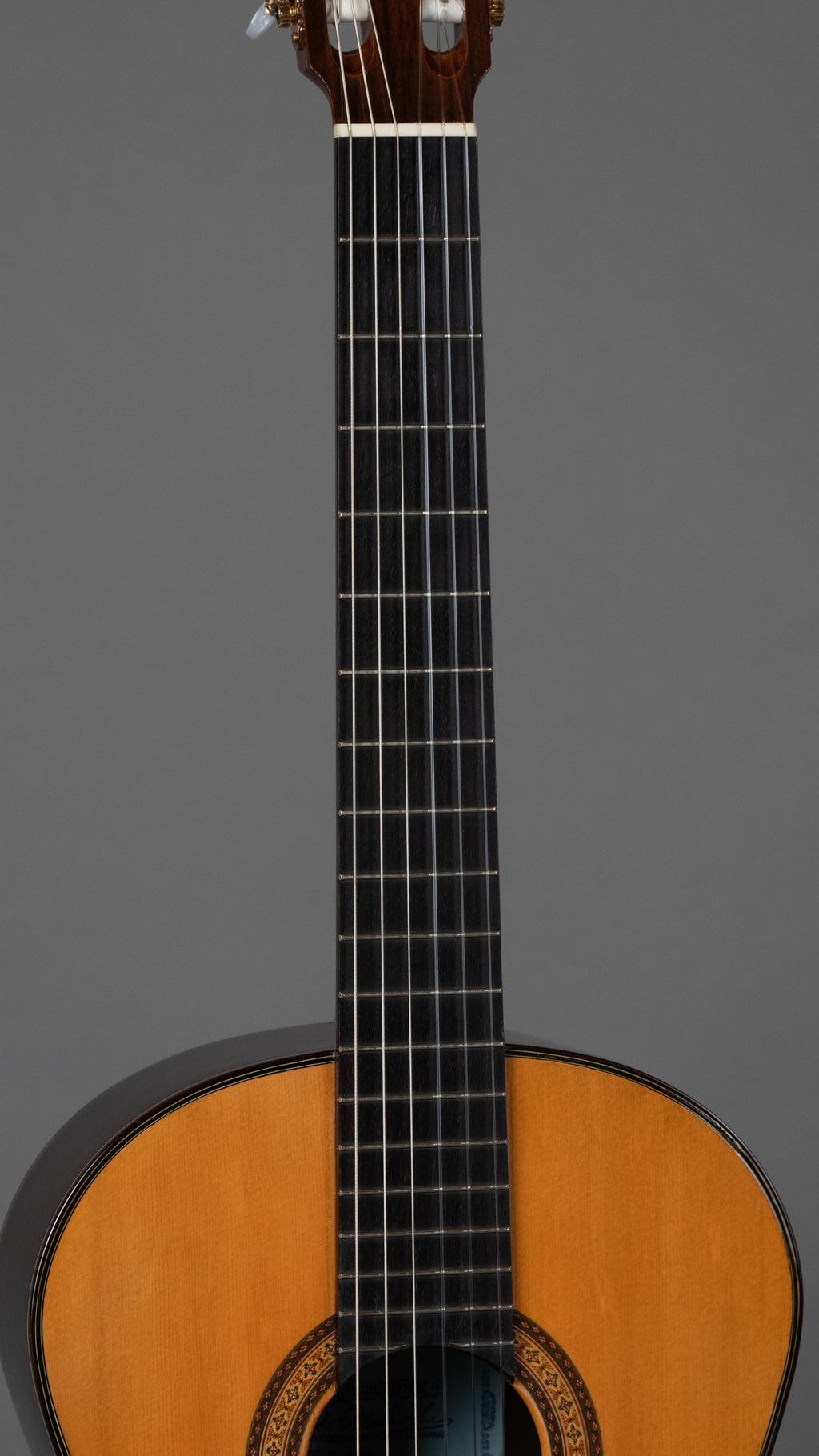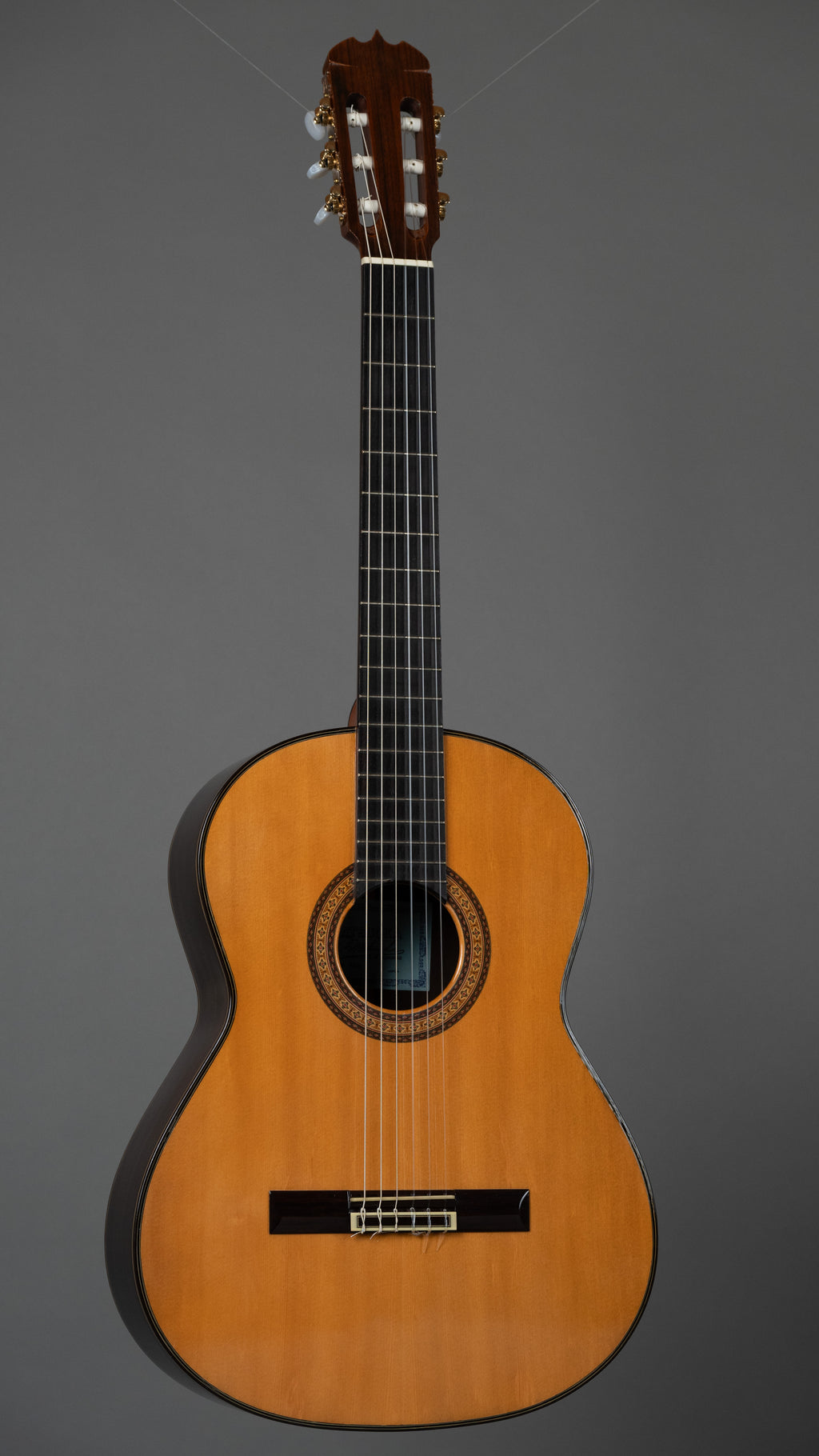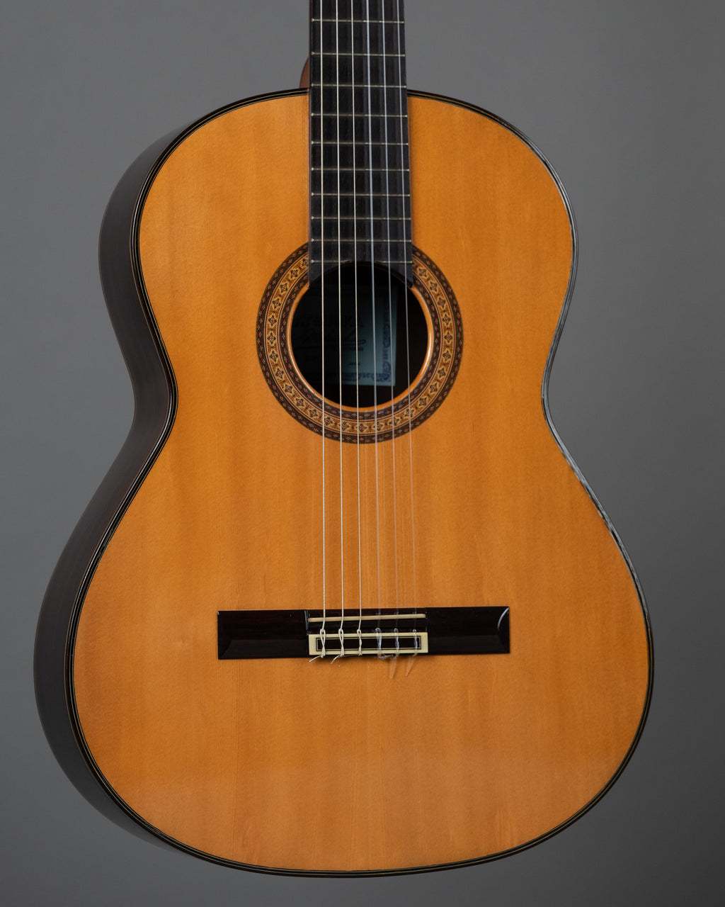 "The M40 model was part of the Concert series of guitars that Matsuoka produced between 1975 and 1981, featuring a solid cedar top, laminated rosewood back & sides, rosewood fretboard and mahogany neck, rosewood bridge, bone nut & saddle and gold lyre tuning machines. Scale length is 652 mm and nut width comes in at 52 mm."
