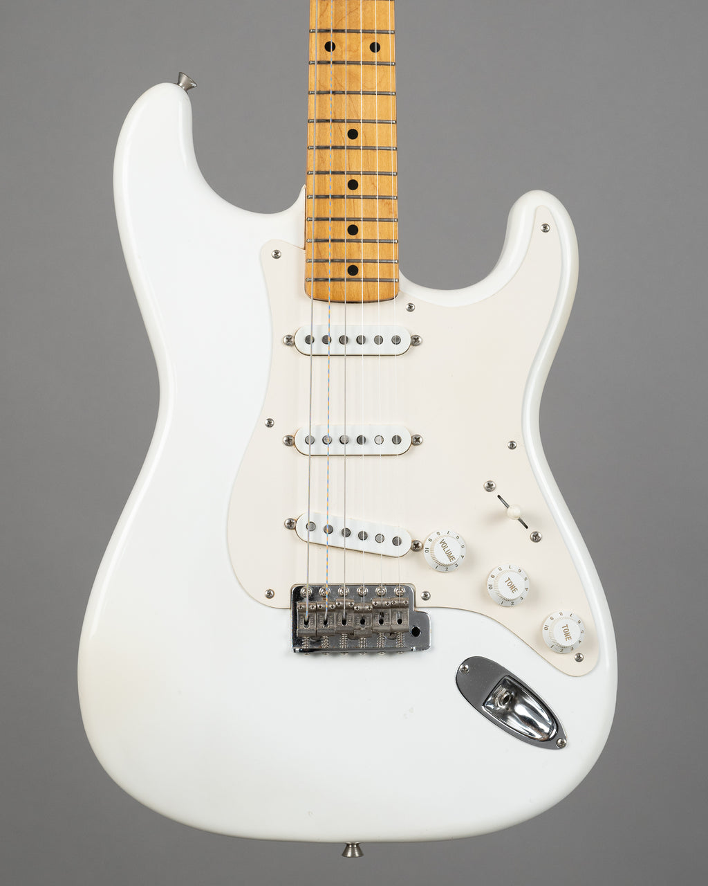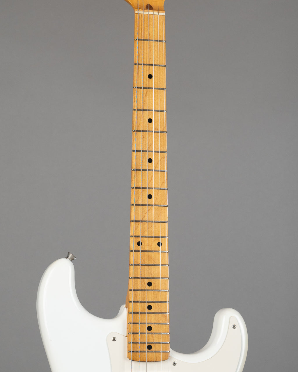 What a bloody charmer this is. Lovely looking ST57 pretty close to the premium Fender Japan years. US pickups with cloth wiring, pots (believe it or not) are full size US and date to 1989. 3 way switch. Clear nitro overspray may explain why this guitar still looks so clean. Frets have some pitting, so don't be fooled...this guitar has been played, but ultimately still runs very well just the way it is. All in all a damn fine Stratocaster.. Made in Japan, lightweight, and of course in the best colour, Olympic White. J020486 Weight: 3.40kgs “I do not think I’m easy to define. I have a wandering mind. And I’m not anything that you think I am.”