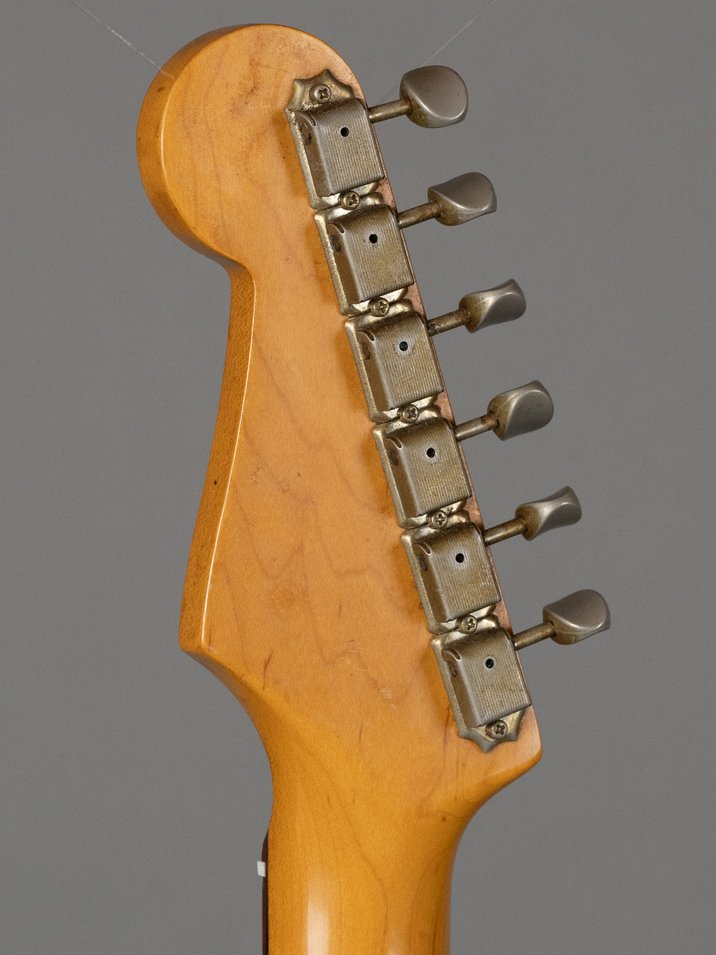 Grouse, beat up 'round '90 Stratocaster. No stranger to nicotine. beaut dark rosewood neck..some pitting on frets. Hardware tarnished.