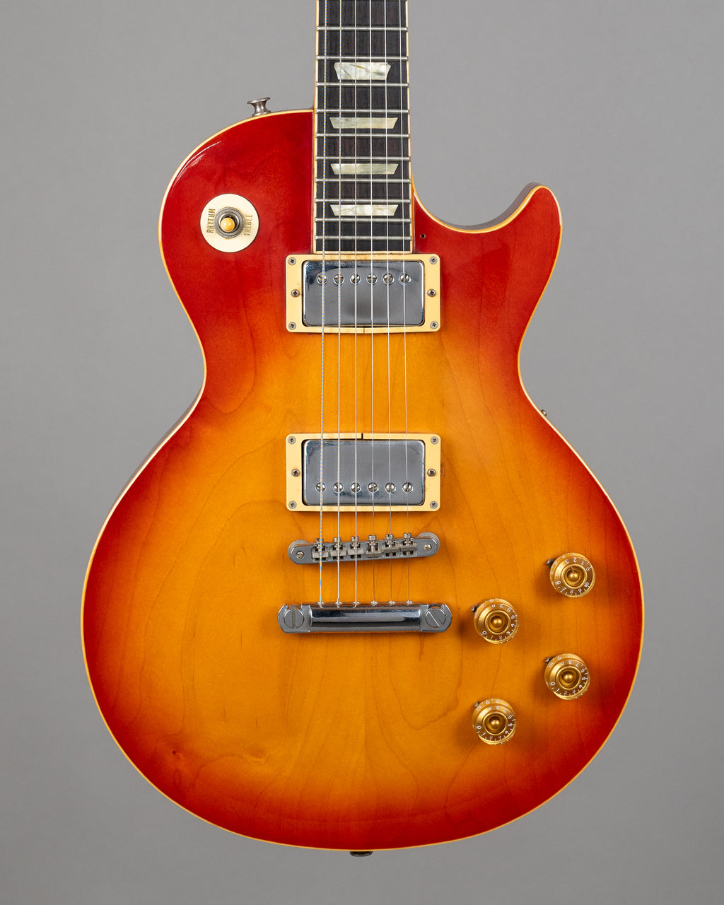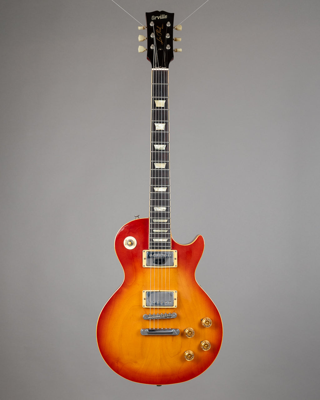 Splendid Orville LP from the 90s. Beaut looking plain maple top..very similar to the Gibson LP's of that time. This one has had a little, very well repaired headstock break, and cracked but functioning pickup rings...but aside from that the guitar does not look as though it has hogged the limelight too much yet. Good weight, nice condition, nice price. Made in Japan. SN Sticker removed. Weight: 4.45kgs
