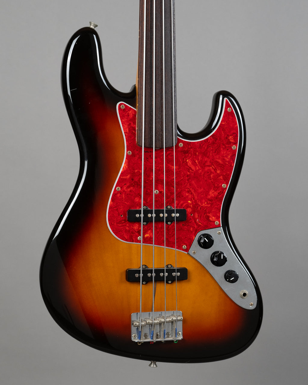 Unlined Fretless Jazzer. Great damn condition. Has been fully reloomed with CTS pots so it'll be good to go for another 30 years, or until the world ends, whichever comes first. Frets are at about 0% (sorry, little guitar shop joke there). Seriously though it's a lovely bass...and if you carry it sans bag on the JR like Jaco Pastorius did (that's Jaco Pastorius, not Oscar Pistorius)..then it will start to look like Jaco's famous bass in no time. Oxidation on the metal parts to some degree. Currently strung up with flatwound strings. Lovely thing. Made in Japan. SN T000251 4.3kgs