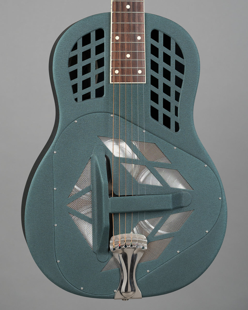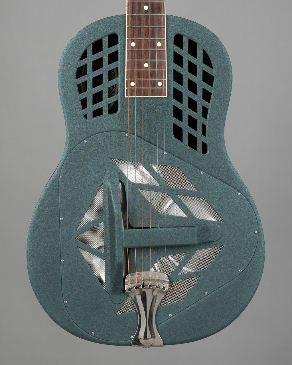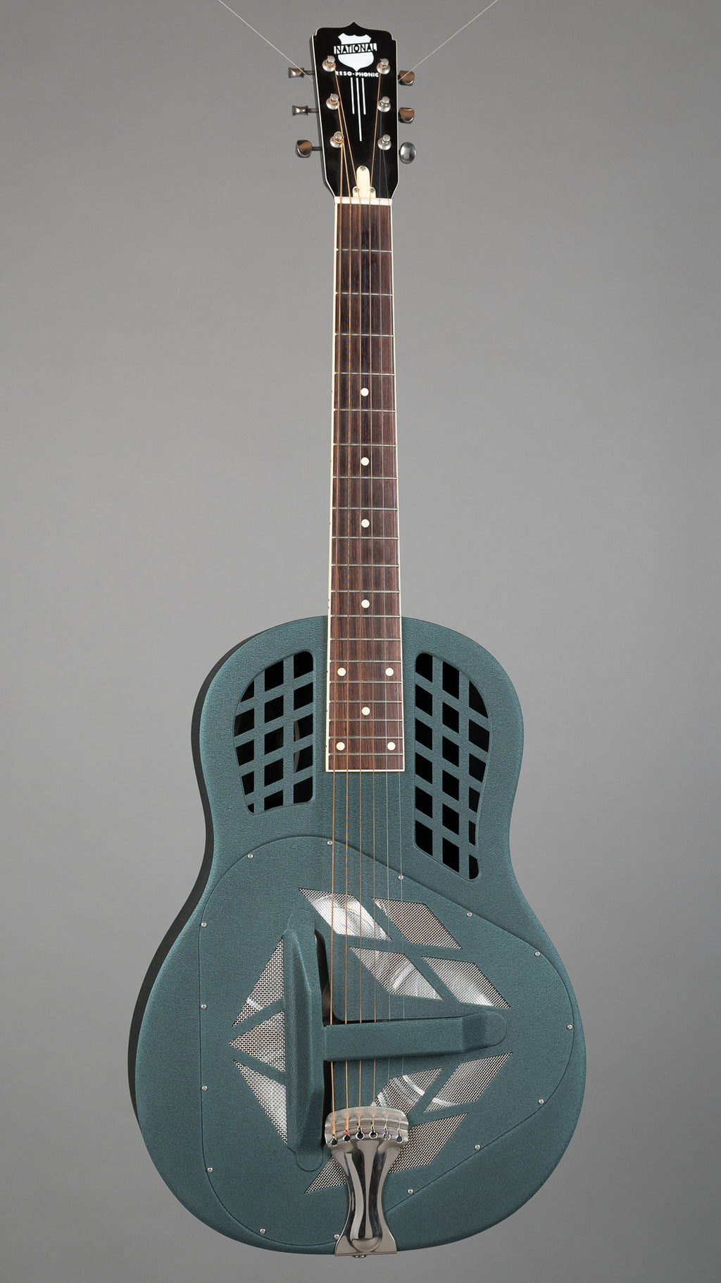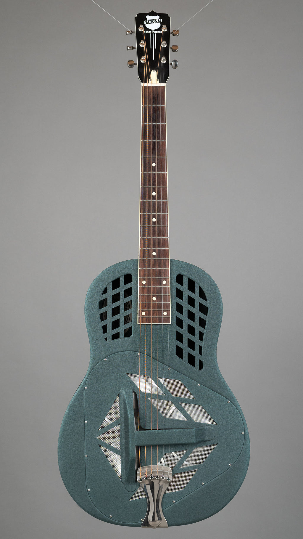 Rare Tricone from National. Forest Green powdercoat 'baked on' finish. Great condition. 12th fret neck join. Very hard to find model. Includes a hardcase. Serial number 327. Made in USA. Weighs 4.30kg