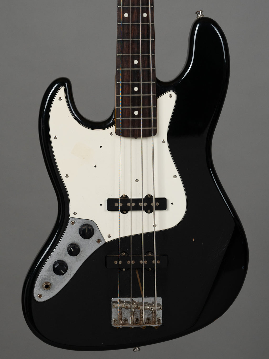 Alder body, Maple neck with slim "C" profile. Rosewood fingerboard, 34-inch scale length, 20 vintage-style frets, Dual vintage-style single-coil Jazz pickups, Two volume, one master tone control, Vintage-style bridge with threaded saddles, Chrome hardware.