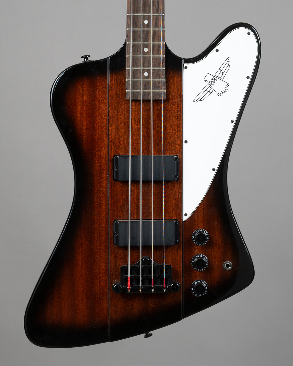 Cheap and cheerful Epiphone Thunderbird bass. Bolt-on neck construction gives this model a tone somewhere between a traditional Gibson Thunderbird (set neck) and something like a Fender P Bass (bolt on). A lot of bass for the bucks for someone who wants to get going and wants something reliable but a little bit different too! Could use a new set of strings, so priced accordingly! Serial number 0809200231. Weight: 4.05kg.