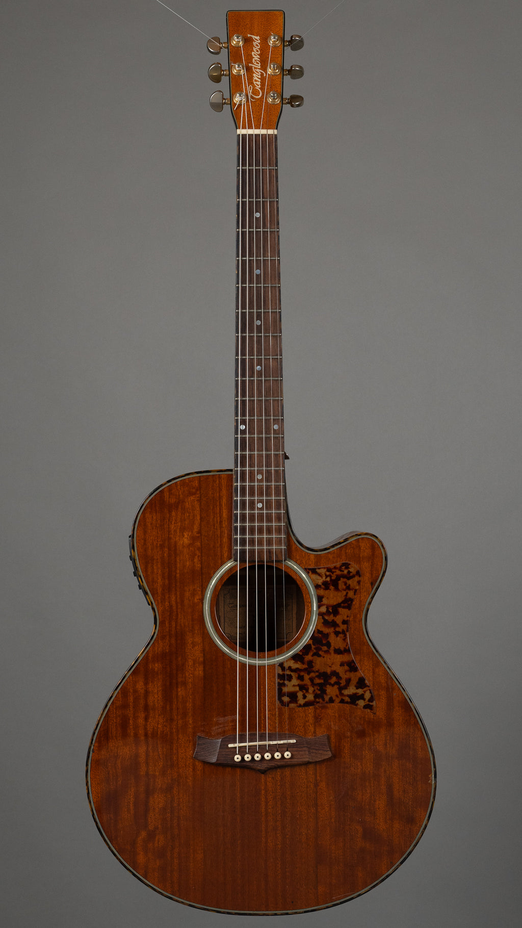 All solid Tanglewood 'Sundance'. Secondhand, well used, small ding on bottom bout. Pickup, solid construction and comes with the Tanglewood branded SKB hardcase too!