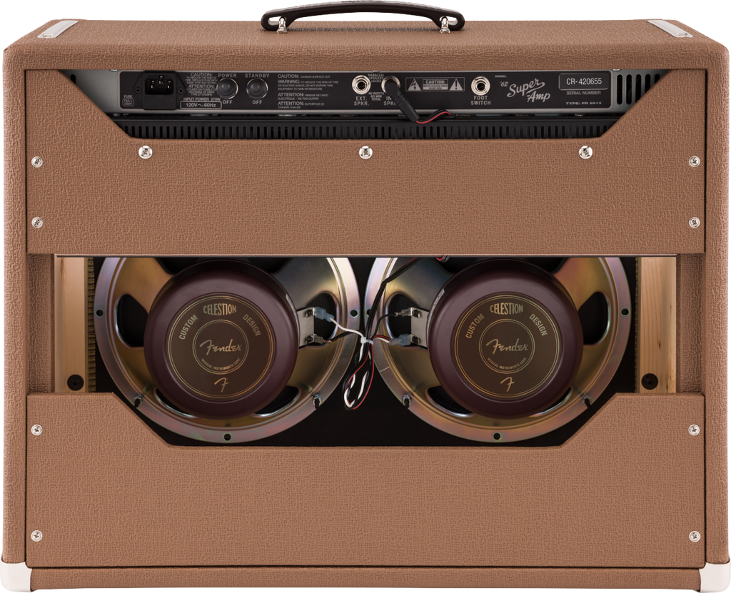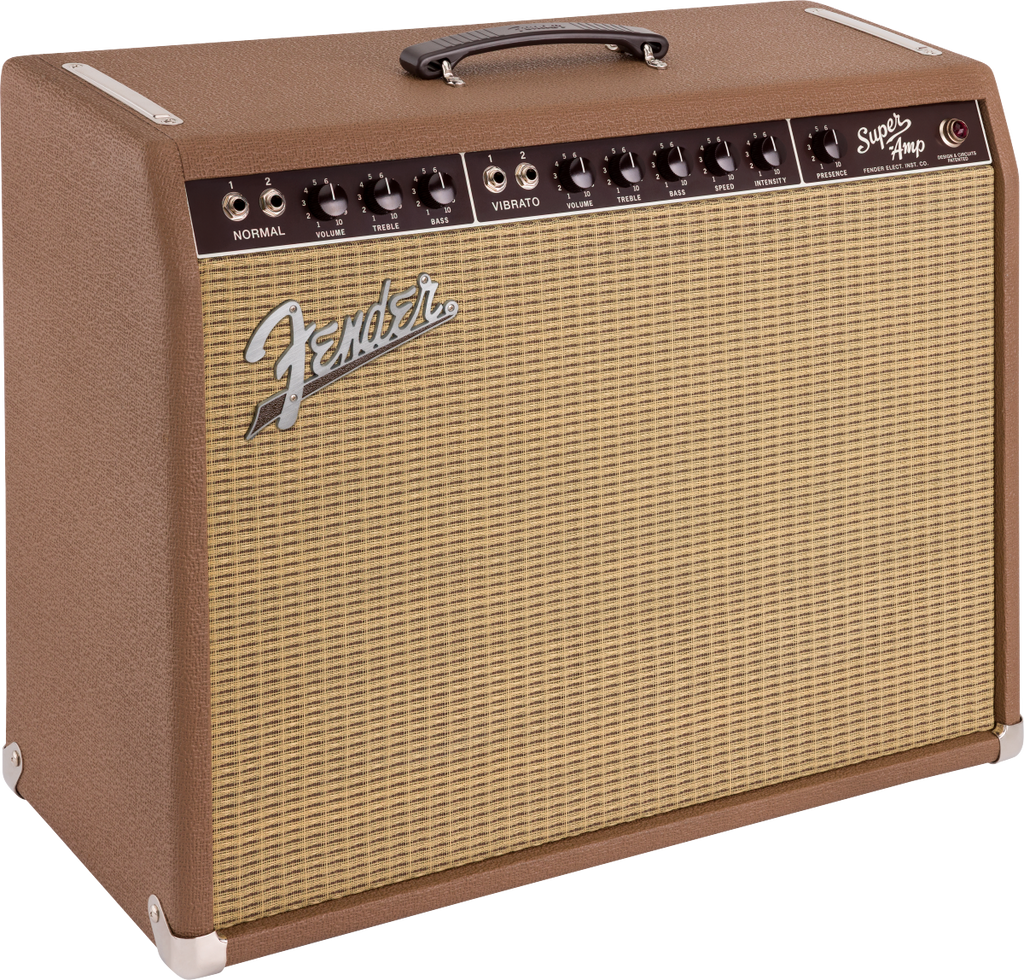 The first of the Fender® brown panel models, the '62 Super™ has an incredibly warm and woody sound when played clean blooming into sweet overdrive when cranked. Along with its special phase-shifting harmonic tremolo, this amp dishes out phenomenal tone at any volume. With dual 6L6 power tubes pushing 40 watts through two 10" Celestion® Custom Design speakers, the '62 Super™ is ideal for recording and gigging.