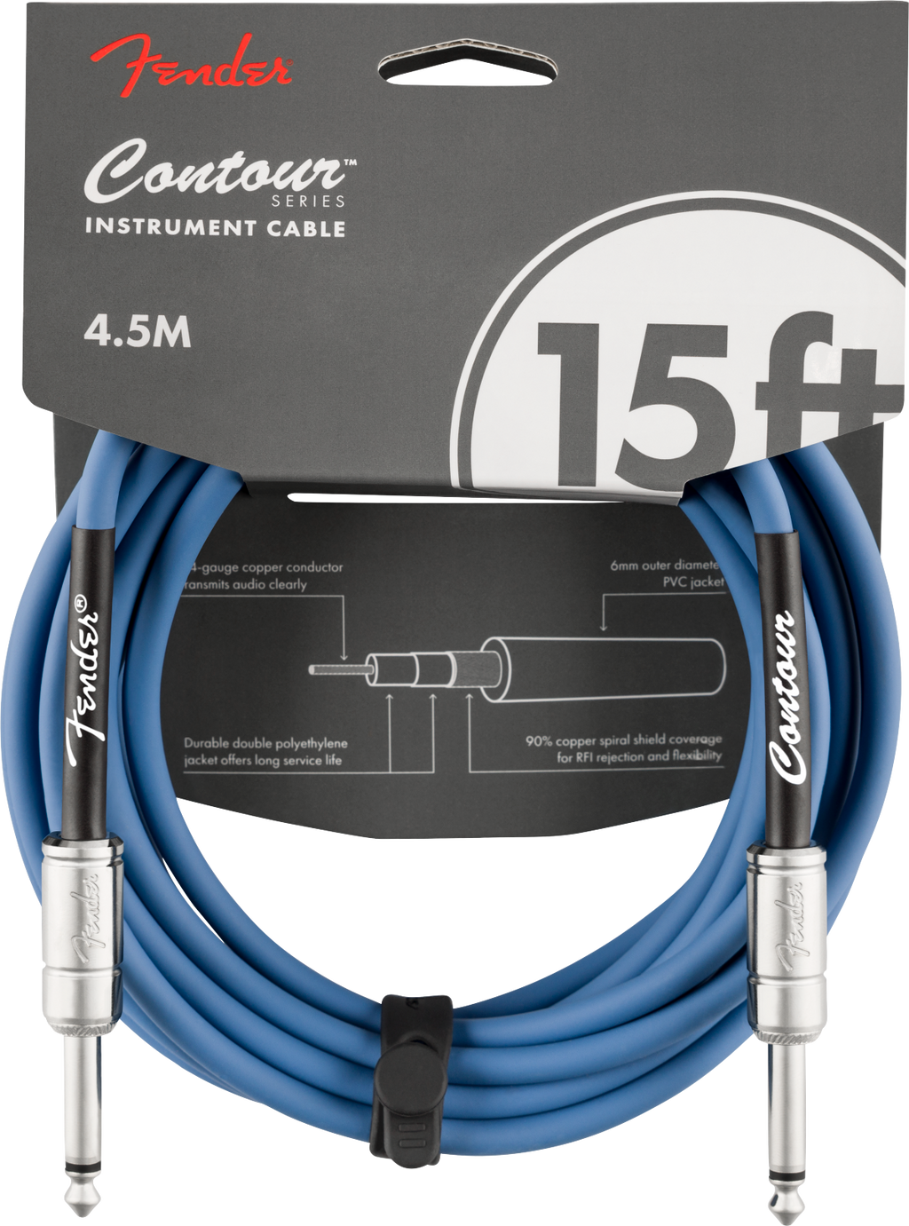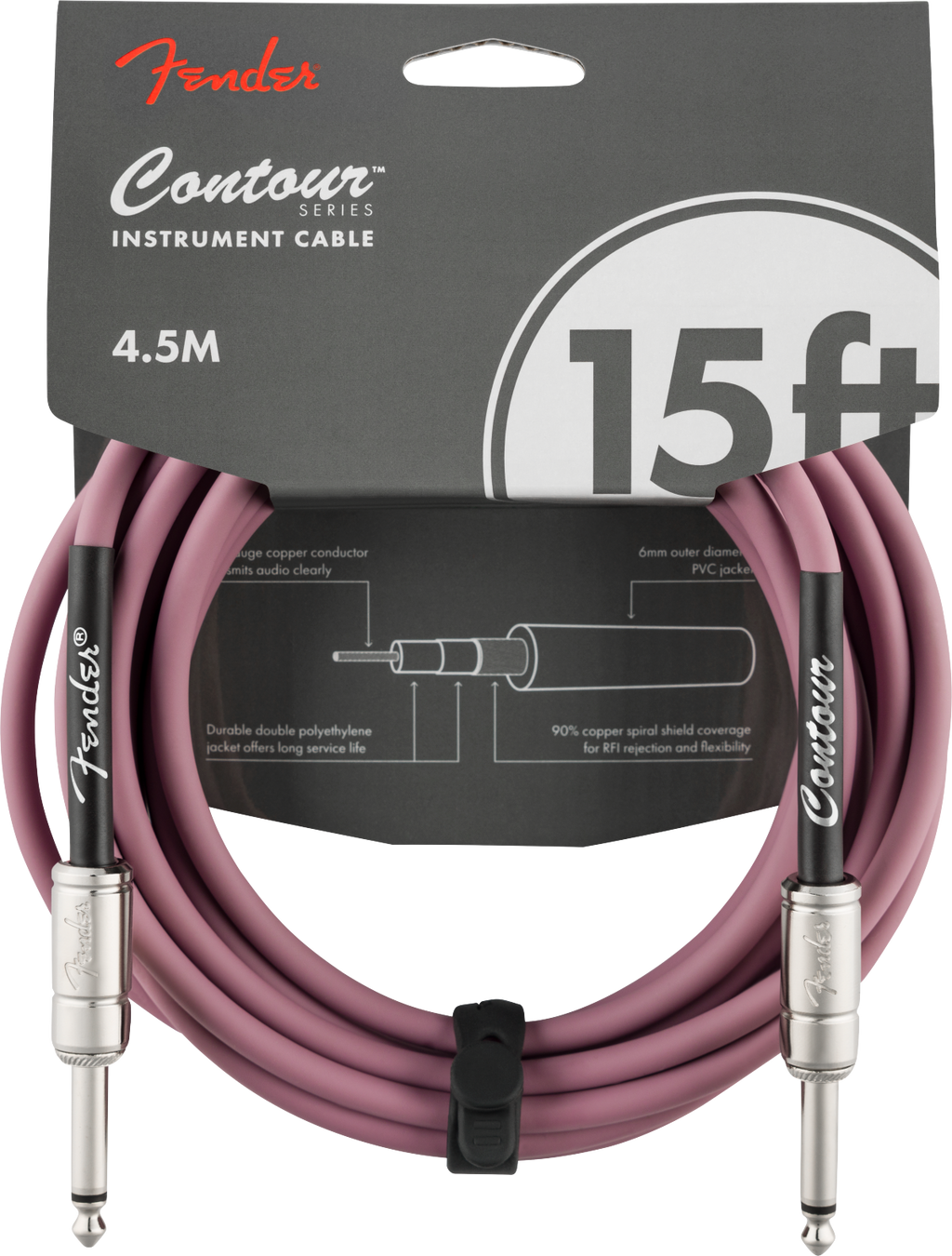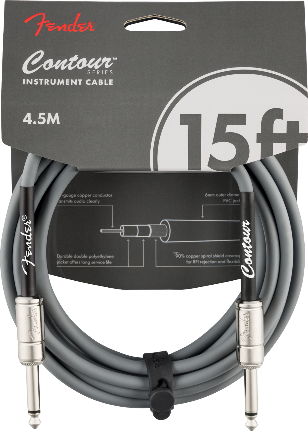 Fender Contour Series instrument cables were designed by combining solid construction - featuring spiral shielding and durable nickel-plated connectors - with unmistakable Fender styling to create a high-performance, reliable choice for your cable needs on stage and in the studio.