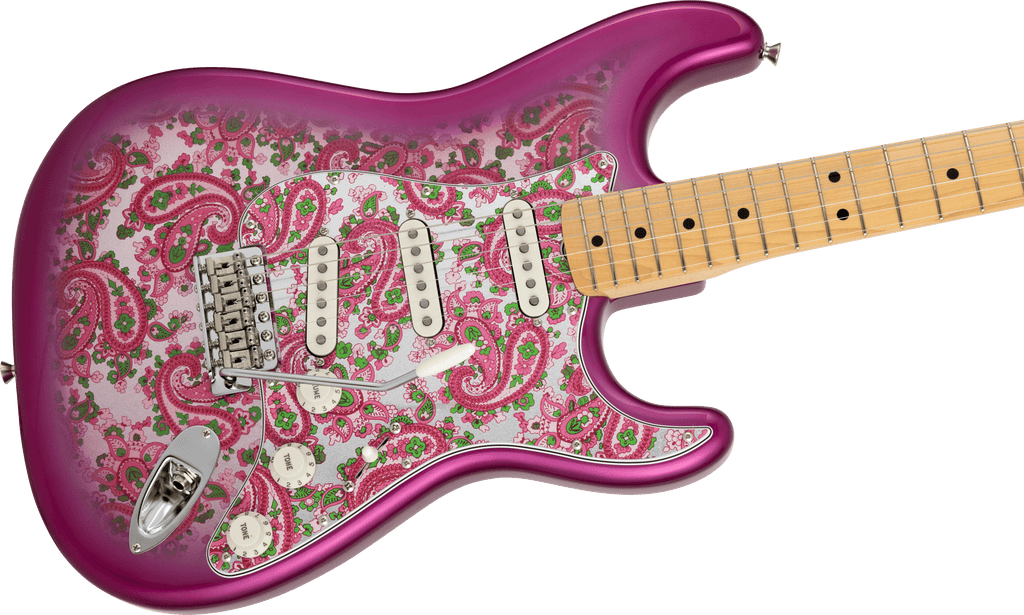 Influenced by the 1967 'Summer of Love' and 'Flower Power' trends, which influenced fashion around the world, Fender also released the 'Blue Flower' and 'Paisley Telecaster®' that same year. These guitars, characterized by their unique look featuring a foreign material sheet covering the entire body, were particularly beloved by rockabilly, country, and rock-and-roll players. These instruments, which hold a special place in Fender's history, are re-released as limited-edition models with Made in Japan quality for 2025. The Made in Japan Limited Stratocaster Paisley features a gloss-finished Alder body with a paisley-patterned sheet applied. The 1969 'U'-shaped maple neck with a 7.25" radius and 21 vintage-style frets provides a classic playing feel that is faithful to the original.