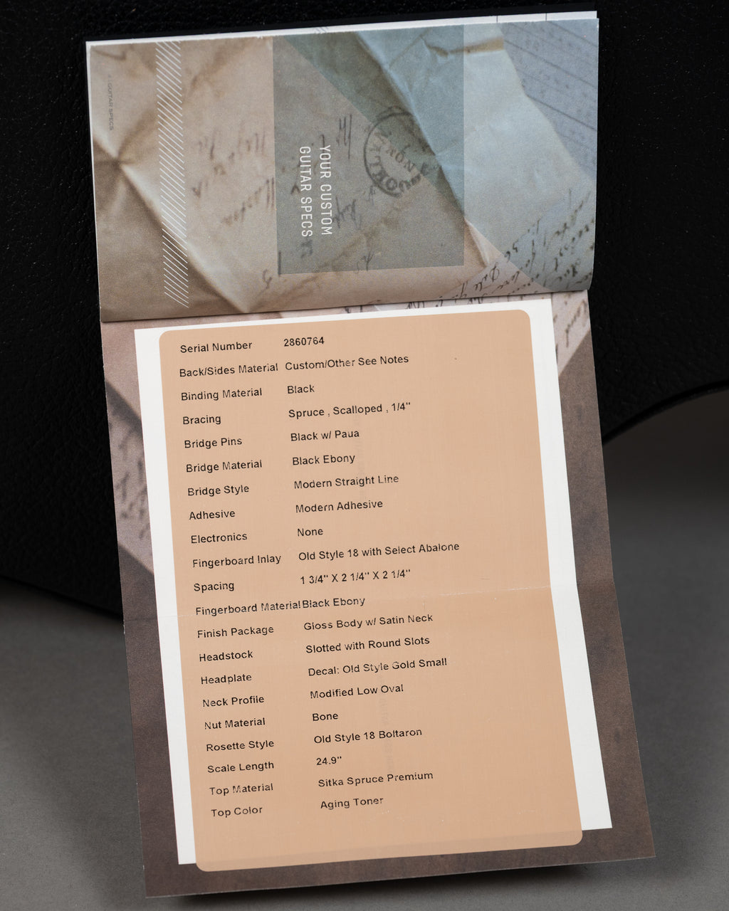 - Top: Premium Sitka Spruce (Aging Toner Finish)
