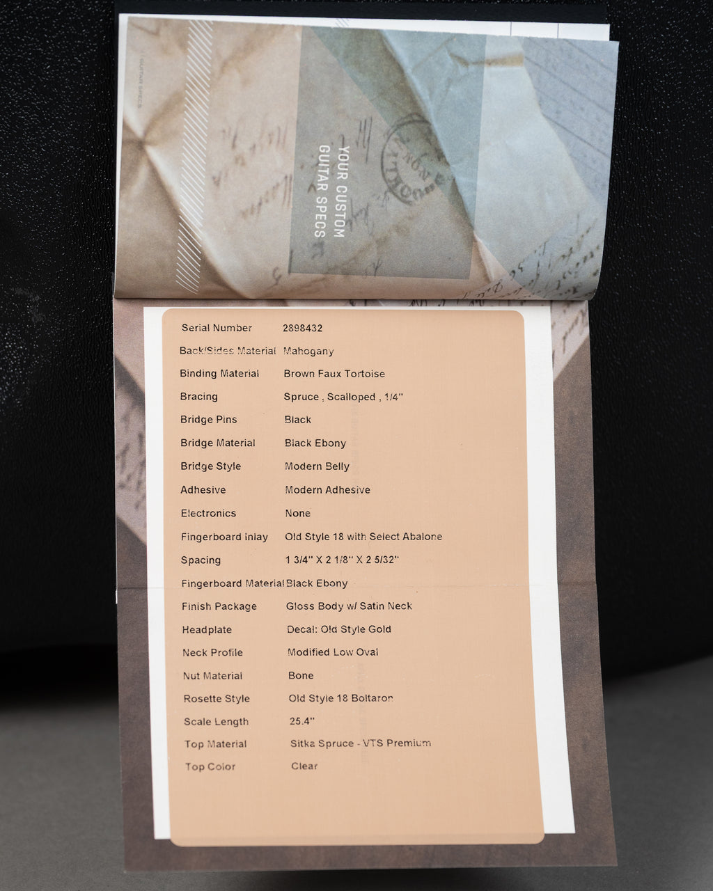 - Fingerboard: Black Ebony with Old Style 18 Select Abalone inlays