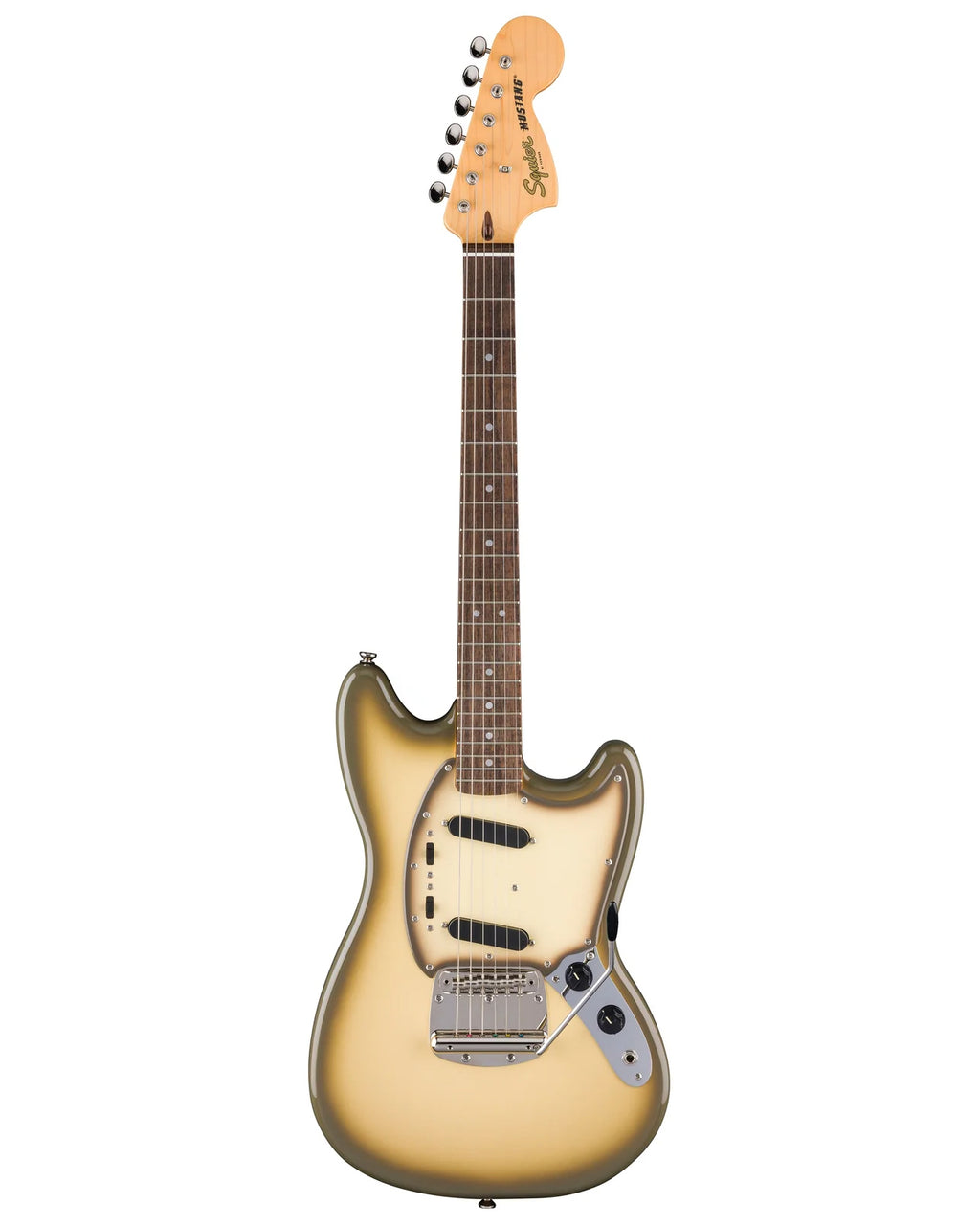 This Squier model also features 1960s-inspired headstock markings, rich-looking nickel-plated hardware and a slick vintage-tint gloss neck finish for an old-school vibe.