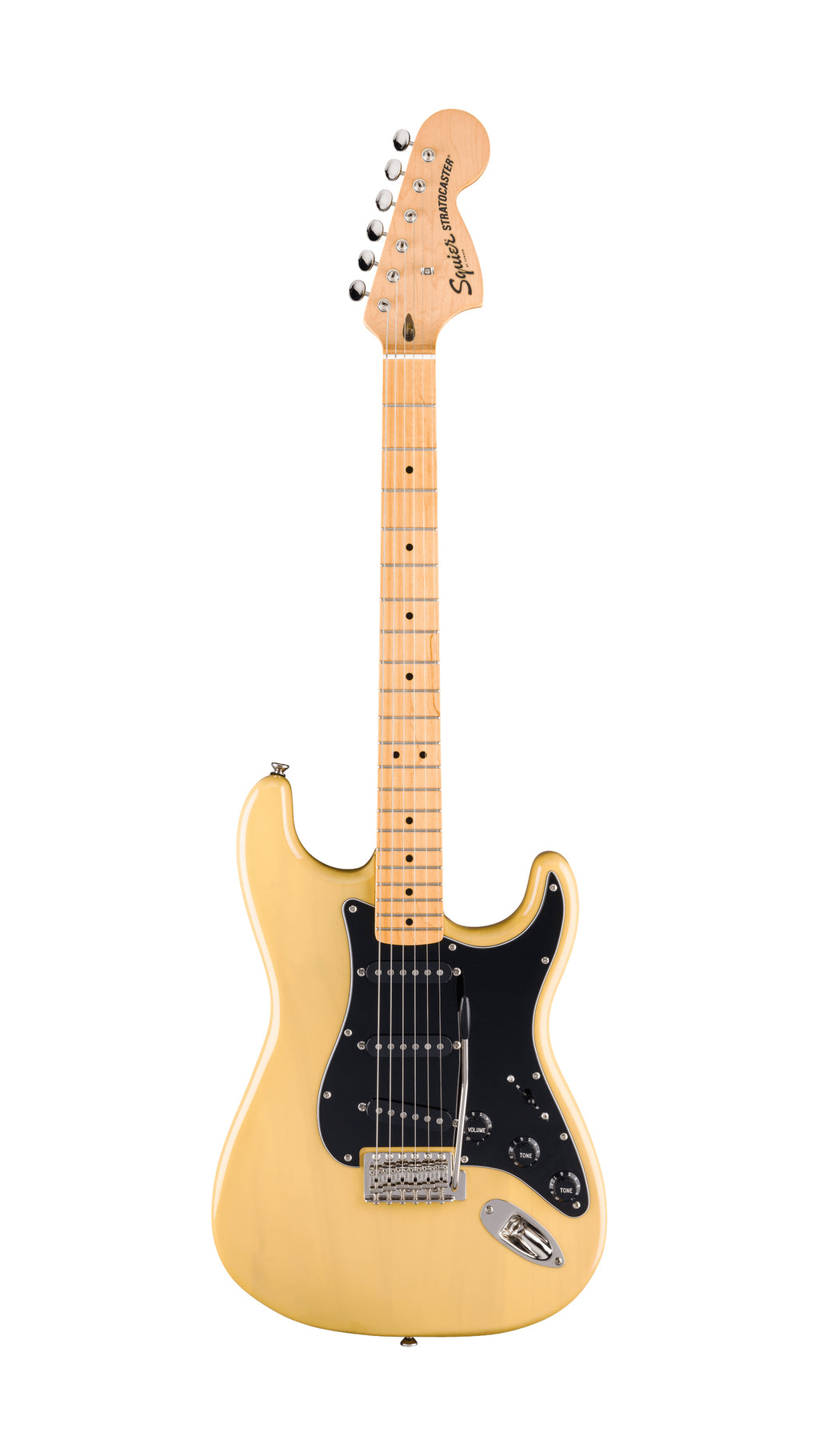The Squier Classic Vibe FSR '70s Stratocaster in Vintage Blonde pays homage to the big-headstock Strat models of the 1970s with style and authenticity. Featuring a soft maple body, vintage-tint gloss maple neck, and a comfortable “C”-shaped profile, this Strat offers smooth playability with a 9.5" radius fingerboard and narrow tall frets. Three Fender-Designed alnico single-coil pickups provide classic Strat sparkle and quack, while the 5-way switch delivers tonal versatility. The vintage-style synchronized tremolo allows expressive pitch control, and nickel-plated hardware completes the retro aesthetic.