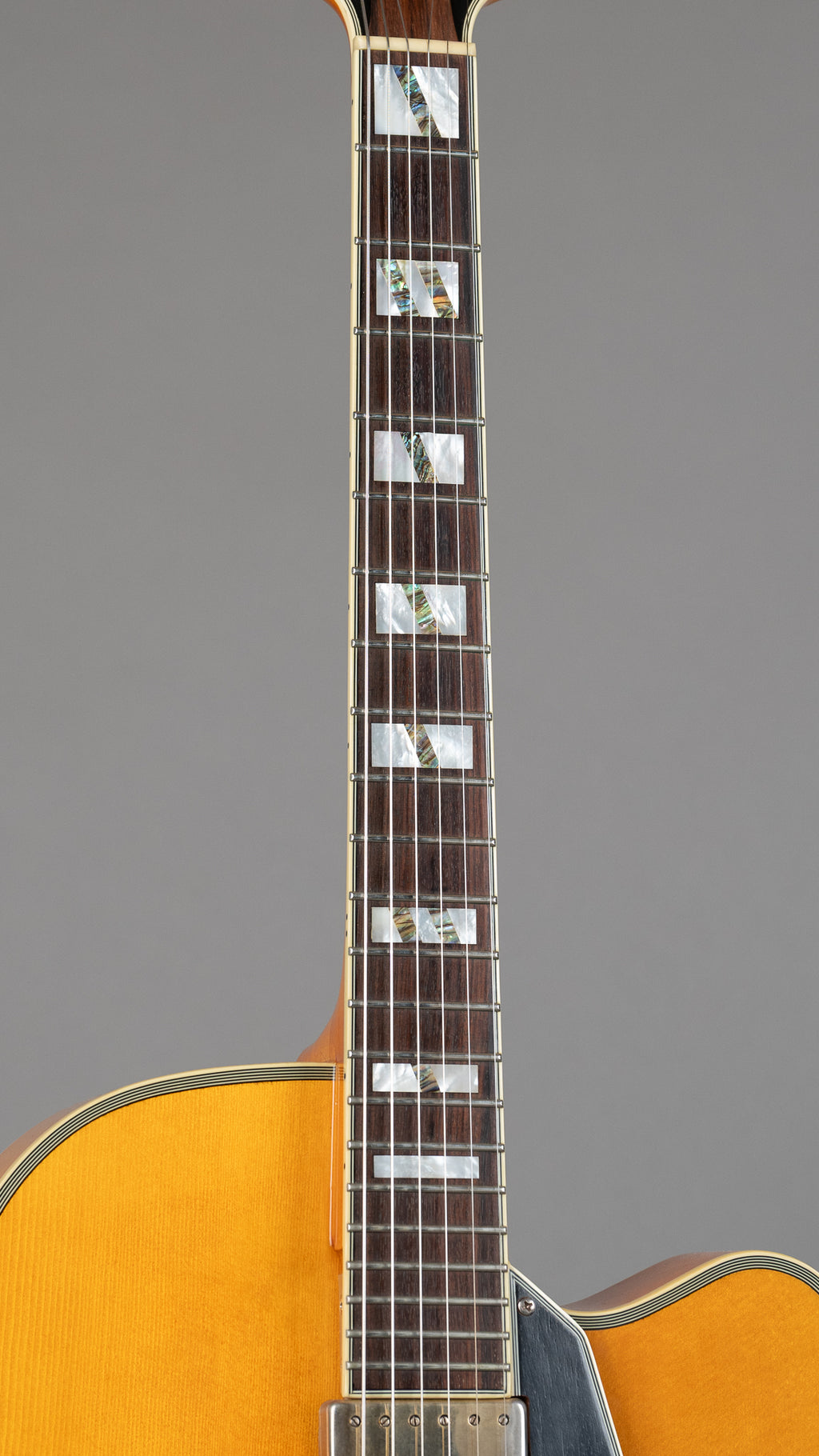 No expense spared really, a lovely thing..neck binding, wood bridge, Grover Imperial tuners. Nifty little pickup in the neck position.