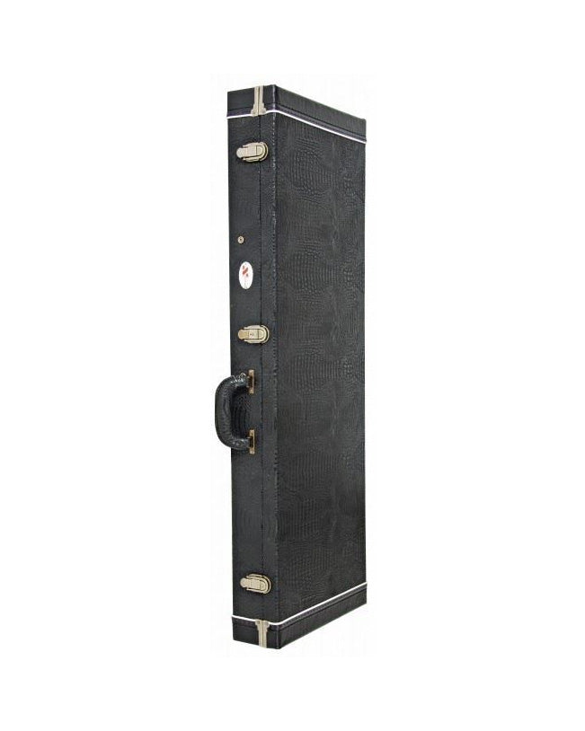Stitched black end caps with white piping. Black plush lined padded interior with large covered accessory compartment. Deluxe stitched handle. 2 nickel vintage style spring latches with locks and 1 drawbolt latch. Xtreme logo plate.
